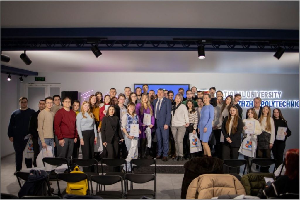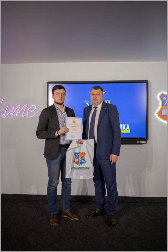 Урочиста церемонія підбиття підсумків університетського конкурсу студентських наукових робіт. Наш студент Віталій ЛОФЕРДЮК з гр. БАД-212 був нагороджений грамотою за ІІ місце у секції “Матеріалознавство”. Переможців привітали ректор Віктор Грешта та голова Наукового товариства студентів, аспірантів, докторантів, молодих учених і спеціалістів Сергій Леощенко.