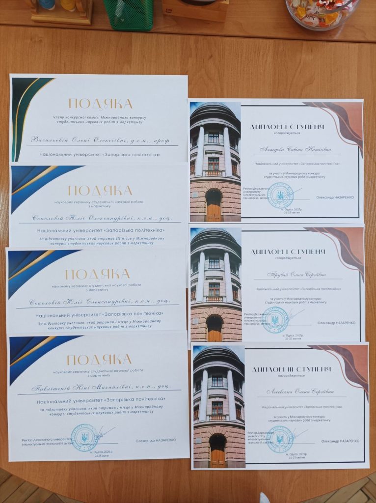 Здобувачі 2-го курсу групи БТЕ-1113 Сабіна АХМЕДОВА та Ольга ТРУБАЙ прийняли участь у Міжнародному конкурсі студентських наукових робіт з маркетингу (м.Одеса 24-25 квітня 2025 року). Вітаємо дівчат та їх наукових керівників доцента Юлію СОКОЛОВУ та доцента Ніну ПАВЛІШИНУ з отриманням 1 місця в конкурсі!