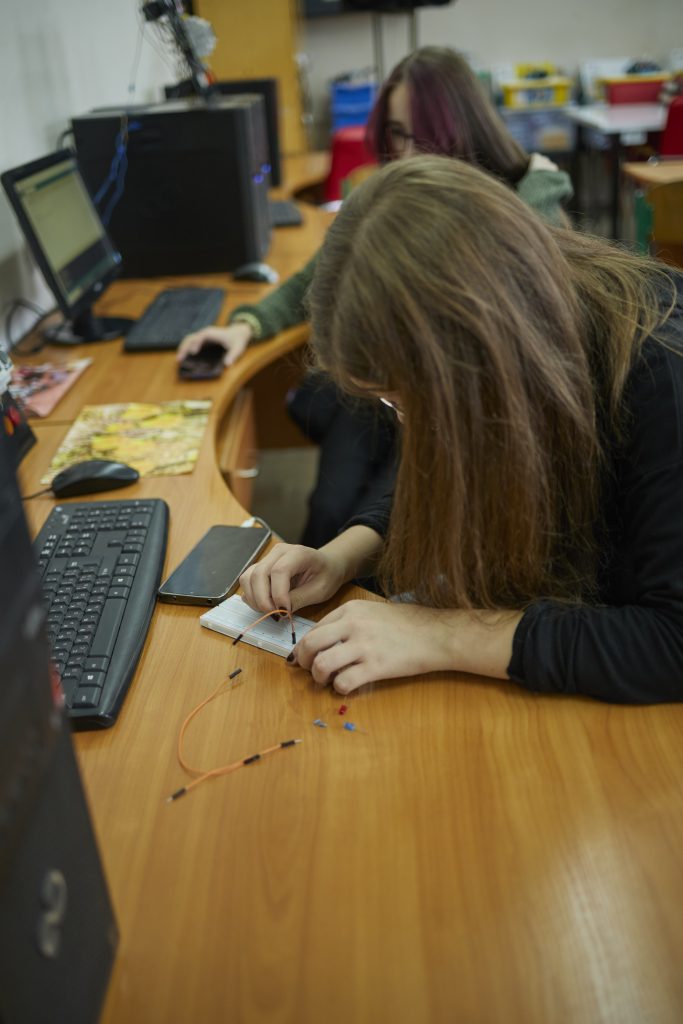 - Основи фізики та електроніки: навчимося складати прості електричні схеми, ознайомимося з основними поняттями струму, напруги та навантаження. На цьому етапі ви зберете свій перший проект зі світлодіодами та кнопками.